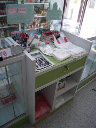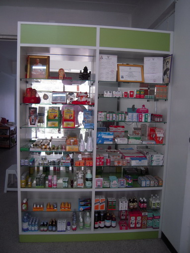 ขายเฟอร์นิเจอร์ (เคาน์เตอร์รูปตัว L เป็นตู้กระจกโชว์สินค้า/โต้ะทำงานเข้ากับเคาน์เตอร์/ตู้วางยาข้างล่างมีตู้เก็บสต๊อค/ตู้วางยากั้นห้อง) พร้อมทั้งยา เฟอร์นิเจอร์ทุกชิ้นเป็นงานไม้ Built in สีเขียวมะกอกตัดกับสีขาว และ ตู้แช่ SANYO อุปกรณ์และเฟอร์นิเจอร์ทุกชิ้นใช้งานไม่ถึง 1 ปี
