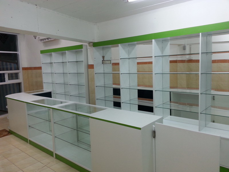 รับผลิตเฟอร์นิเจอร์ร้านขายยา โรงพยาบาล คลินิค เคาน์เตอร์ร้านขายยา ตู้โชว์ยา ผลิตโดยใช้ไม้MDF ภายนอกหุ้มด้วยแผ่นลามิเนต(โฟเมก้า)กันน้ำ ภายในพ่นสี งานที่มีมาตรฐาน แข็งแรง เช็ดทำความสะอาดง่าย ทนรอยขีดข่วนและความร้อน