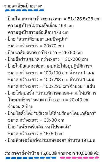 ✅ ป้ายต่างๆ จำนวนมาก เช่น ป้ายเภสัช ป้ายสถานที่ขายยาแผนปัจจุบัน ป้ายไวนิลเภสัชไม่อยู่ ป้ายประเภทยา ป้ายโฟมบอร์ด ป้ายใสตั้งโต๊ะ และป้ายร้าน (ลอกสติ๊กเกอร์ออกแล้วนำไปทำใหม่ได้ค่ะ)