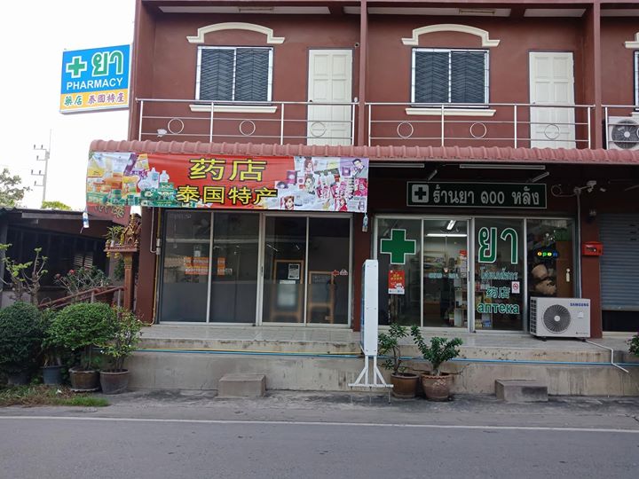 ร้านยาอยู่ข้างแฟมมิลี่มาร์ท ด้านในซอยเป็นหมู่บ้านที่พักอาศัยจำนวนมาก อยู่ใกล้ตลาดโพธิสารมีร้านอาหารจีนอยู่ข้างๆ