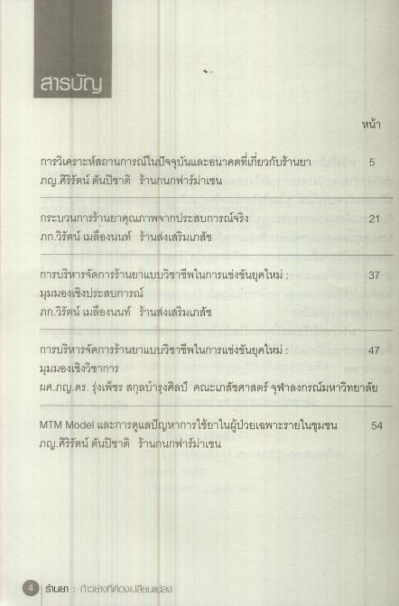 39. การปฏิบัติงานของเภสัชกรชุมชนในร้านแต่ละวัน หน้าร้านเป็นสิ่งที่เรามองออกไปทุกวัน ถ้าตกแต่งหน้าร้านให้ดู ร่มรื่น ร่มเย็น มันก็จะเย็นตา เย็นใจ ทำให้เราผ่อนคลาย มีความสุขขึ้น