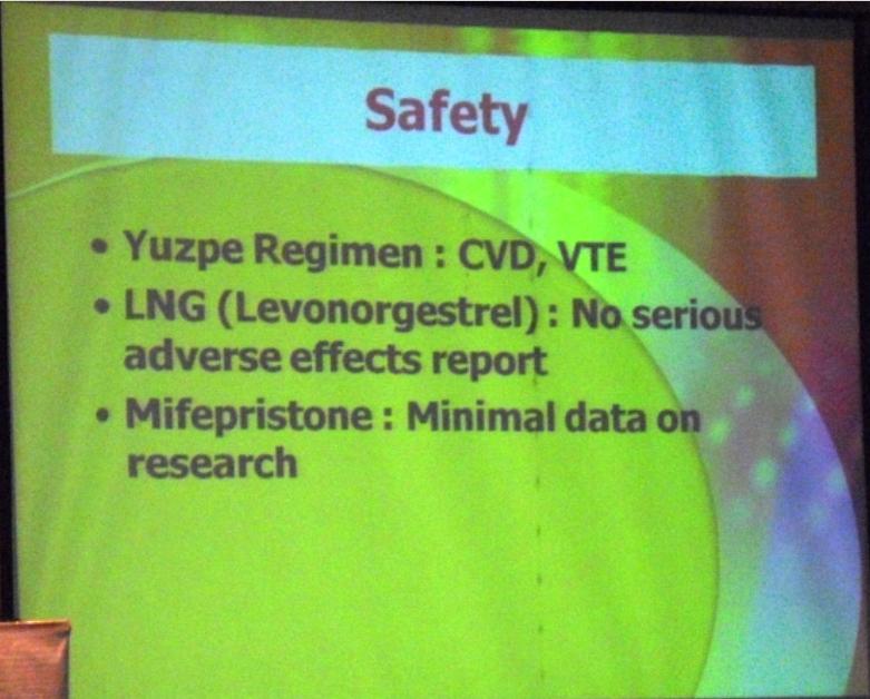 2. การทานยาคุมปกติ แบบ Yuzpe นั้น EE ต้องรวมกันมากกว่า 100 microgram และ LNG ต้องมากกว่า 500 microgram ถึงจะได้ผล ทานไม่เกิน 12 ชม อาจทานยาป้องกันการคลื่นไส้อาเจียนร่วมด้วย