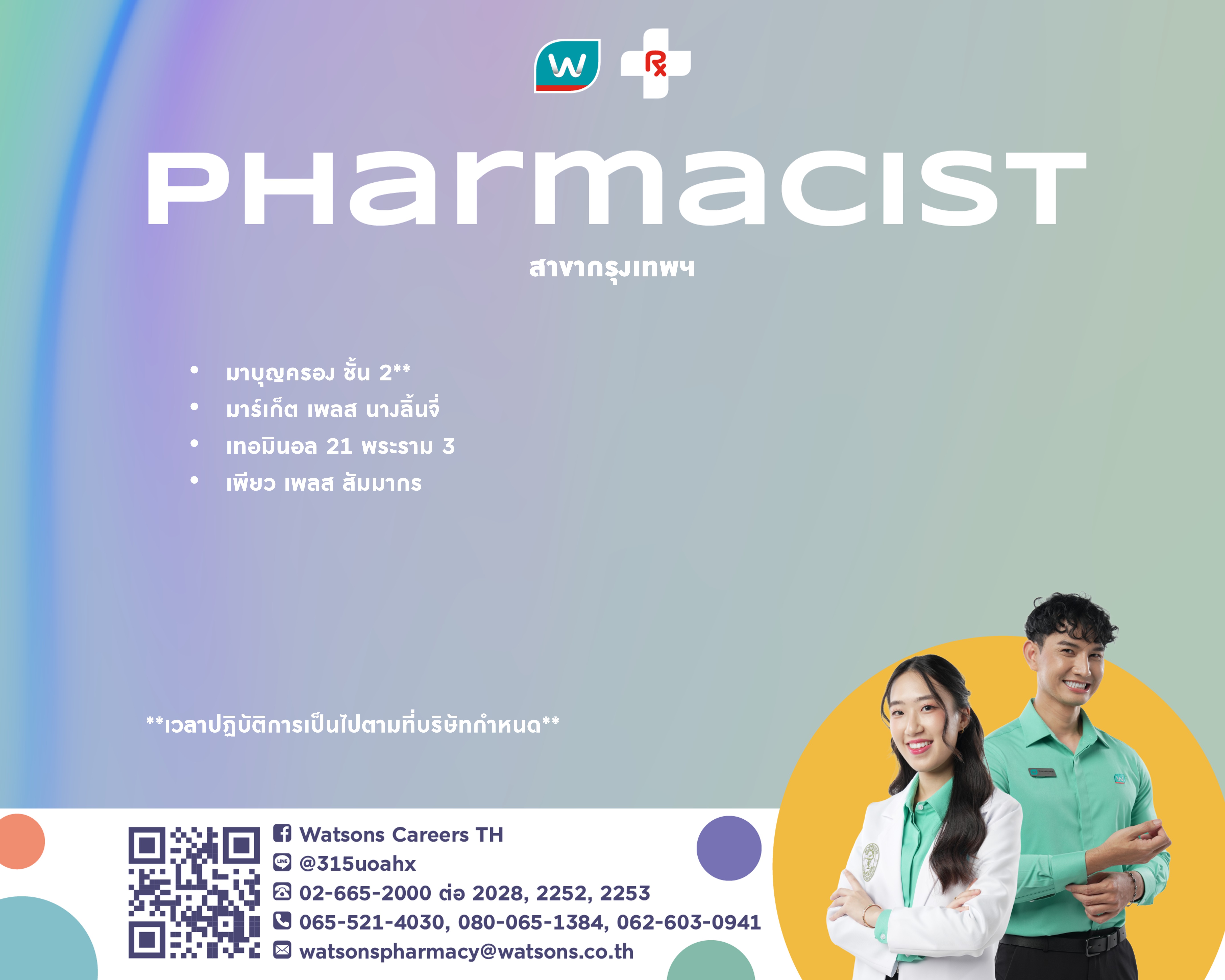 Re: WATSON เปิดรับสมัครเภสัชกรหลายตำแหน่ง