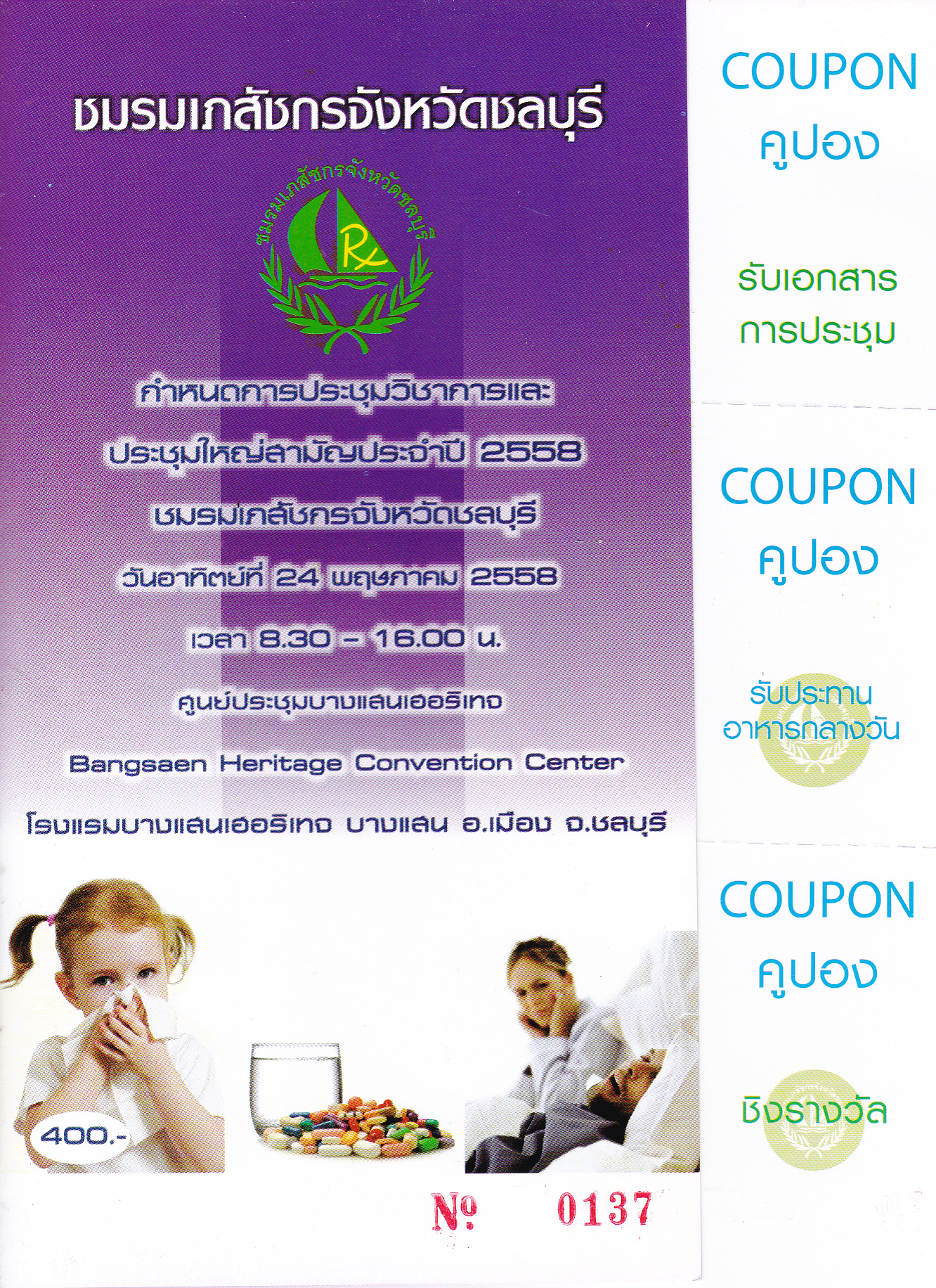 ชมรมเภสัชกรจังหวัดชลบุรี ขอเชิญประชุมวิชาการและประชุมใหญ่สามัญประจำปี 2558