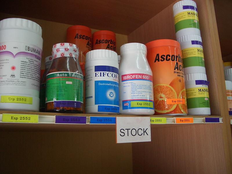 ผมเห็นภาพชั้นที่จัดเรียงยาหลายร้าน ไม่มี Sticker สีปีที่หมดอายุกำกับหน้าสินค้า ไอ้ที่เป็นกล่องทุกท่านก็คงติด ถ้าติดอย่างที่ผมทำ เวลาหยิบสินค้าออกขาย จะมองได้เลยว่า ยาในกลุ่มนี้หมวดนี้ หรือ ตัวยาลักษณะอย่างนี้ ตัวไหนใกล้หมดอายุก่อน มองที่ Shelf ก็รู้ได้เลยครับ ว่าควรนำยาตัวไหนออกขายก่อน ถ้าใช้ได้เหมือนกัน ยาที่เรียกหา Self Care Products ยาที่มีวันหมดอายุ ผมก็ติดปีหมดอายุกำกับหน้าตำแหน่งสินค้าเช่นกัน