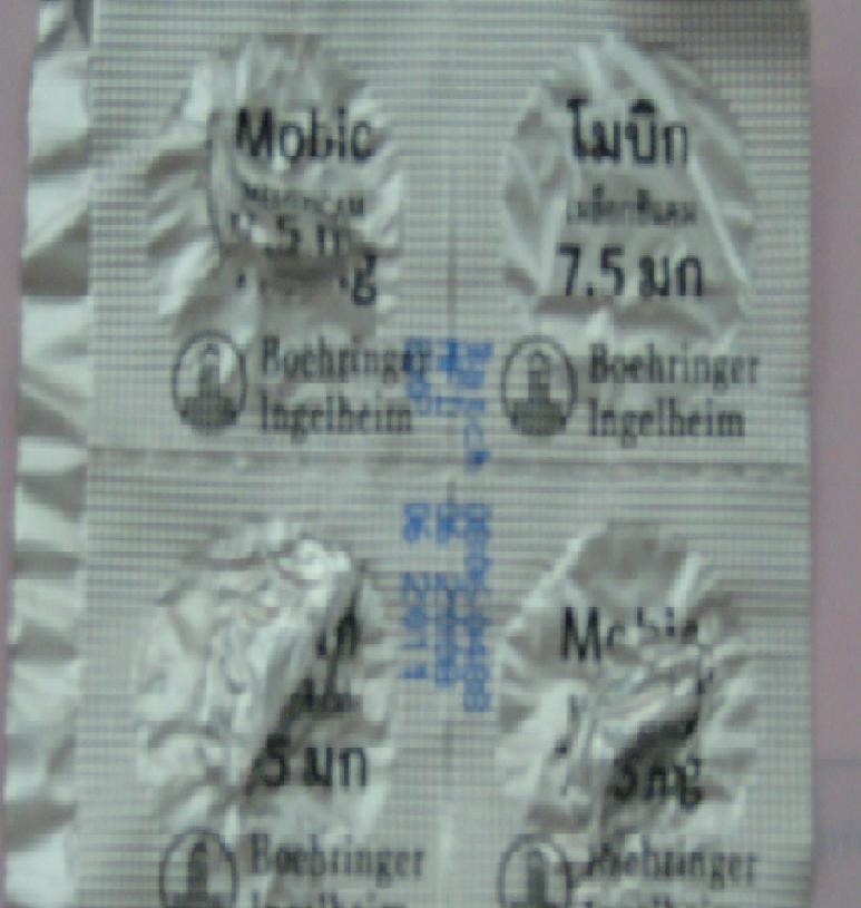 ได้ไปซื้อ Mobic 7.5 mg มาจากยี่ปั้ว แล้วมาขายให้ลูกค้า อีกหลายวันต่อมาลูกค้ามาบอกว่าแผงยามียาแค่ 9 เม็ด จึงบอกให้ลูกค้าเอาแผงมาให้ดู ก็พบว่าที่ฟอล์ยมุมขวาบน (ตามรูป) ไม่มีเม็ดยา ส่วนอีก 9 เม็ดนั้นลูกค้าได้ฉีกฟอล์ยรับประทานไปหมดแล้ว จึงได้โทรไปบอกทางบริษัท Boehringer และจะให้ผู้แทนติดต่อมา